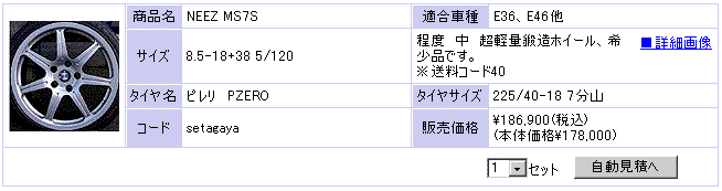 | 自動お見積の内容を確認後、ご来店希望、または通信販売時の送料を計算する為、 該当部分を選択して、再度を押してください。 |